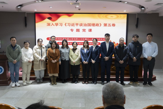 校企双方党支部书记、支部委员及党员、入党积极分子、入党申请人代表近70人齐聚一堂,共学思想、共话担当。学院马克思主义学院贾慧舫副教授围绕《习近平谈治国理政》第五卷的出版背景意义、与前四卷的内在联系、理论体系、核心要义、实践要求等五个维度,系统解读了《习近平谈治国理政》第五卷的丰富内涵。授课中,贾老师深入解读了“两个结合”“高质量发展”等核心论述,并紧扣轨道交通行业发展与校企育人使命,指明了理论指导实践的路径方法。党课脉络清晰、重点突出,是校企党建共建的生动实践。
